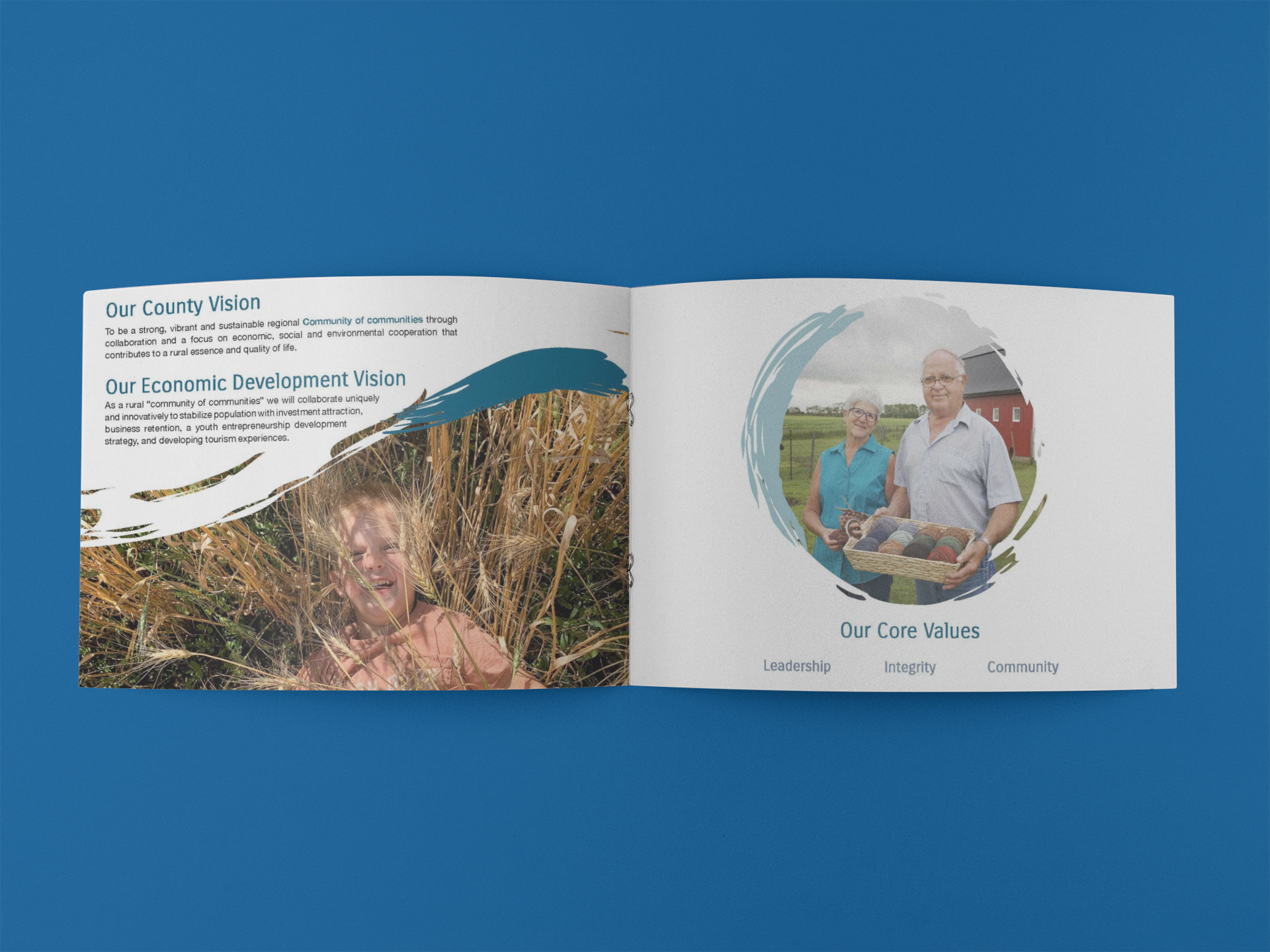 In 2019 I worked with Lochaven Management Consultants to prepare communications material for Flagstaff County around their new community & economic development strategy. Having an engaging and attractive piece of collateral around the rollout was seen as important to the general acceptance of the initiative. Flagstaff County’s brand standards include a bright palette and swooping brush marks which made lots of space for creativity when paired with some great local photography!